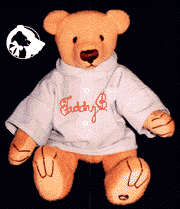 Theo Theo stands 12 inches tall, is fully jointed and made of Vintage fabric with German glass eyes, tan ultrasuede paws and a brown hand-stitched nose. He wears a replica "Teddy B", hand-made and embroidered by the artist . Polyfil. Limited Edition Reference Thoe $99.00 US plus S&H. |