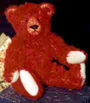 Little Red This guy is adornable...little devil, He is red sparse mohair, 10 inches tall, shoe button eyes, wool felt paw pads, excelsior/cotton stuffing. He features a center seam from nose to back of the neck. One-of-a-kind. Reference Little Red $119.00 US plus S&H. |