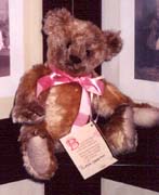 Viola This sweet little lady, looks like she was just retrieved from an aunts attic. A one-of-a-kind is made of antiqued cream dense mohair, 10 inches tall, shoe button eyes, wool felt paw pads, excelsior/cotton stuffing. She is wearing an antique look pink ribbon. She features a center seam from nose to back of the neck. Reference Viola $129.00 US plus S&H. |