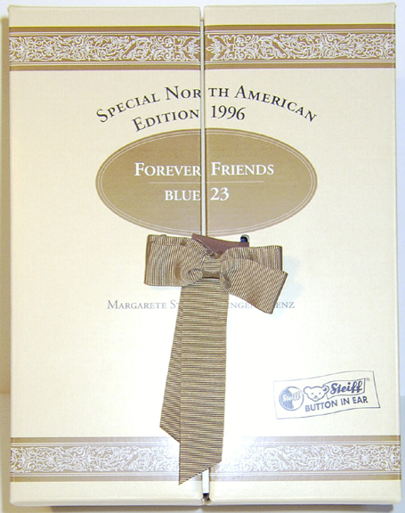Steiff Limited Edition of 4000, Representative of the enduring bond between a Steiff Teddy Bear and it's owner, "Forever Friends". This happy pair is also an expression of the joyful camaraderie of any two people who have loved and laughed together. They would make a great wedding gift! Two bears, 9.06 inches (23 cm), blue mohair, wool felt, fully jointed, stitched noses and claws. USA exclusive. EAN 665059, Ed. No. 559.